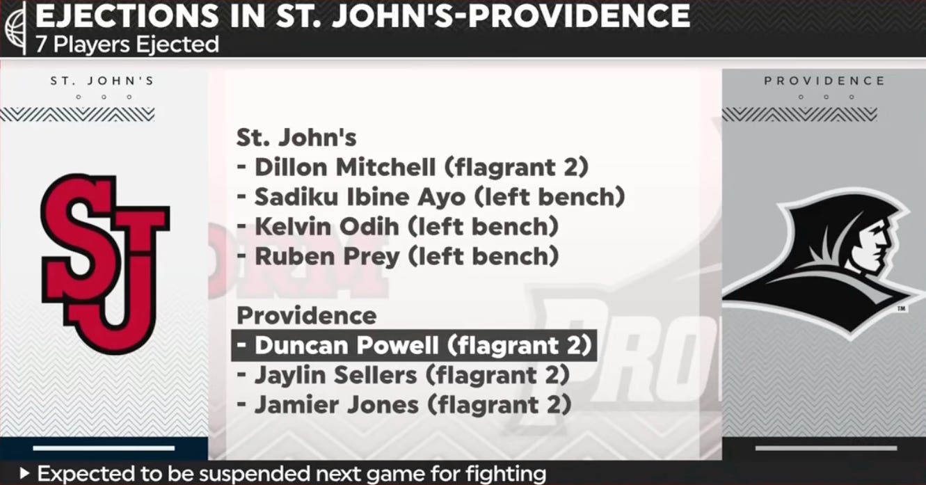 It was just last week when Providence committed some extra-curricular activities on-court against the St. Giovani’s Red Sauce, resulting in a 20-minute delay of game and 6 players ejected.