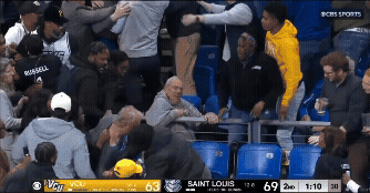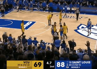 Last night, there was a dust up at the end of the VCU/Saint Louis game as the Billikens were trying to dribble out the ball. There was a little shove on VCU’s Nyk Lewis prompting him to reach in and steal the ball. Then came the bench clearing, with everyone pushing and shoving. Even the refs got shoved around a bit.