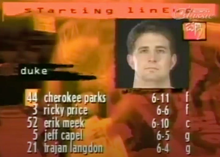 Specially, February 2, 1995, #2 UNC entered Cameron Indoor Stadium to take on a Duke team, who was having a terrible season. Coach K was out for the season recovering from emergency back surgery, Duke was under .500 on the season and losers of 7 of their last 8. However, the Blue Devils took the Tar Heels to double overtime on a buzzer beater by (now Pitt head coach) Jeff Capel.