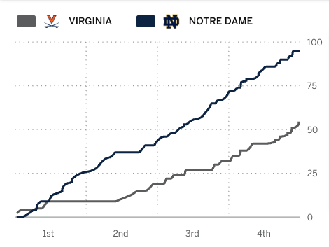 Virginia 54 - Notre Dame 95: It was close for a little bit. About 5 minutes.