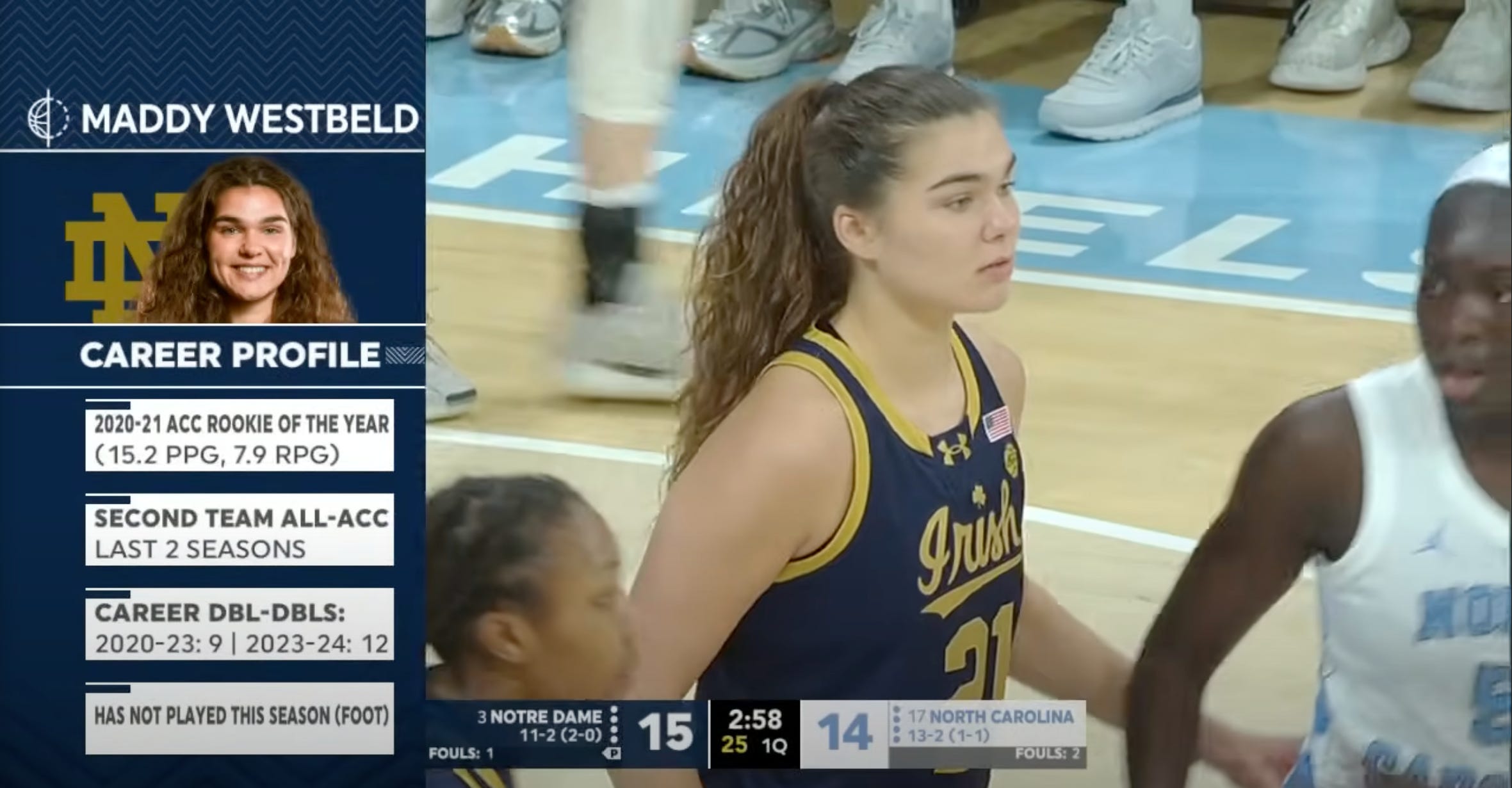 The last bit of good news for the Irish is the return of senior forward Maddy Westbeld, who had not seen the court yet this season due to a foot injury. Westbeld bring more experience, more height, and is basically a Swiss Army knife for the squad going into the dog days of the ACC where every night is a test. When she gets back up to speed, this team is going to be scarier(er) good.
