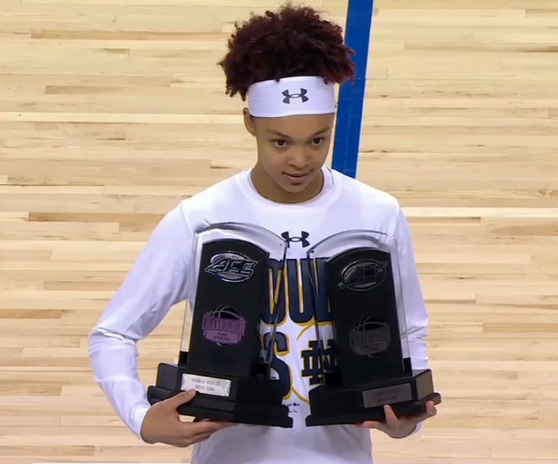 The week started with the announcement that Hannah Hidalgo was awarded both ACC Player of the Year - and - ACC Defensive Player of the Year. Way to go Hannah!