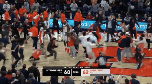 The Orange started the season feasting on tasty treats of the mid majors, before hitting a sugar low against some heavy weights. There is no shame in losing to Houston, Kansas and Iowa State. But, when they followed the 4 wins by those 3 losses, fans started to feel they got the last drop. Then, came #13 Tennessee in the ACC/SEC Challenge, where the Cardiac Cusers squeezed out a 2pt upset, causing the students to storm the court. I mean, when was the last time Carrier Court stormed?